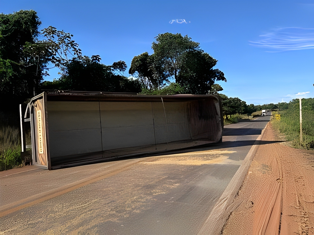 Carreta tomba após falha mecânica na MT-235, próximo a Campo Novo do Parecis